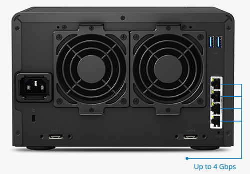 DS1515 搭載四核心處理器,結(jié)合 2GB DDR3 內(nèi)存,在啟動(dòng) Link Aggregation 下,可帶來每秒讀取過 403.77MB、寫入過 421.85MB 的卓越傳輸效能1。 強(qiáng)大的 DS1515 硬件配備可處理大量數(shù)據(jù)存取需求,并為所有聯(lián)機(jī)的客戶端裝置持續(xù)提供高效表現(xiàn)。