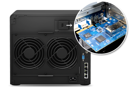 除了內(nèi)建的四個(gè) Gigabit 網(wǎng)絡(luò)埠之外,DS3615xs 內(nèi)建一個(gè) PCI Express 3.0 x8 插槽來(lái)安裝 10GbE 的網(wǎng)絡(luò)適配器 (NIC),藉以提升網(wǎng)絡(luò)聯(lián)機(jī)帶寬,為你存儲(chǔ)系統(tǒng)上需要處理大量數(shù)據(jù)的應(yīng)用程序提供優(yōu)越效能。此外,DS3615xs 內(nèi)建每秒 6Gb SATA III 介面支持,可將 SSD 的高速傳輸效能完整發(fā)揮,確保系統(tǒng)處理多項(xiàng)任務(wù)時(shí),仍維持良好的傳輸效率。