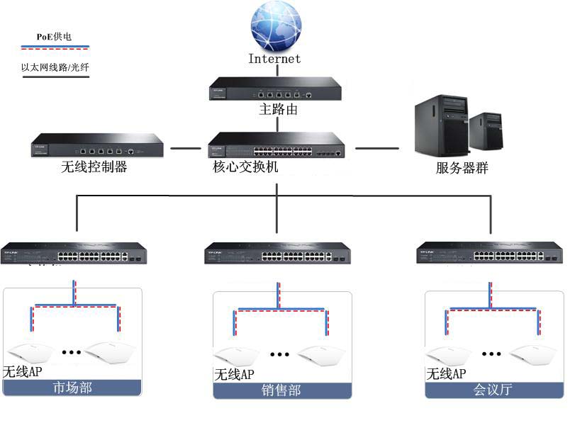 企業(yè)單位網(wǎng)絡較為復雜,對網(wǎng)絡可管理性與可維護性要求較高。無線AP部署位置的靈活性,并且不能成為火災隱患。
