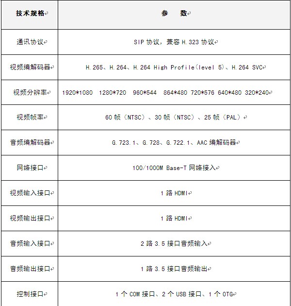 產品特性:全球首款H.265視頻會議終端 ,所需傳輸帶寬降低40%以上;1080P 60高清視頻 ;純嵌入式構架,體積小功耗低;2.4G遙控器操作